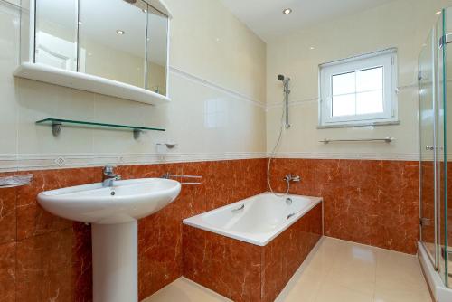 Diese Villa mit Klimaanlage besteht aus 4 Schlafzimmern, einem Wohnzimmer, einer voll ausgestatteten Küche mit einem Kühlschrank und einer Kaffeemaschine sowie 4 Badezimmern mit einem Bidet und einer Dusche. In dieser Villa werden Handtücher und Bettwäsche angeboten.