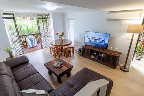 Die Unterkunft In the Centre of Wilderness - 250m from beach - Sleeps 6, die über einen Garten, einen eigenen Strandbereich und eine Terrasse verfügt, bietet Übernachtungsmöglichkeiten in Wilderness mit kostenlosem WLAN und Meerblick. Dieses Ferienhaus besticht durch einen kostenlosen Privatparkplatz und befindet sich in einer Gegend mit Möglichkeiten zum Schnorcheln und Fahrradfahren.