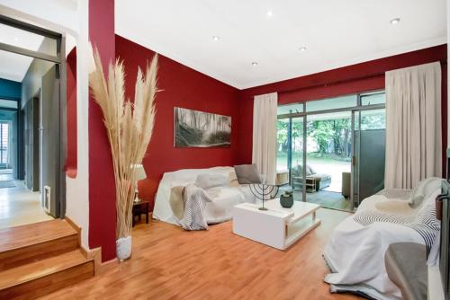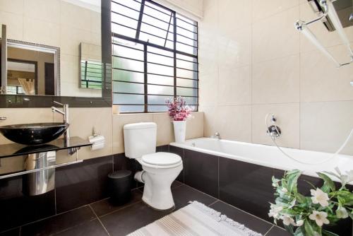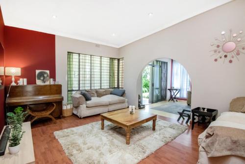 Die Unterkunft Spacious 3-Bed 8-Sleeper with Pool & Tennis Court mit einem Garten ist gelegen in Johannesburg, 7,8 km von Gautrain-Bahnhof Sandton und 8,3 km von Modderfontein Golf Club sowie 8,4 km von Einkaufszentrum Sandton City entfernt. Dieses Ferienhaus ist 12 km von Kongresszentrum Gallagher Convention Centre und 15 km von Parkview Golf Club entfernt.