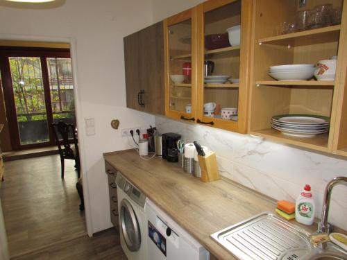 Diese Ferienwohnung befindet sich im Erdgeschoss und ist ausgestattet mit 2 Schlafzimmern, einem Flachbild-TV und einer voll ausgestatteten Küche, die den Gästen einen Kühlschrank, einen Geschirrspüler, eine Waschmaschine, einen Ofen sowie eine Herdplatte bietet. In dieser Ferienwohnung werden Handtücher und Bettwäsche zur Verfügung gestellt.