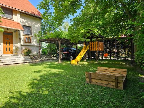 Die Unterkunft Szilvás 10, die über einen Garten, eine Gemeinschaftslounge und eine Terrasse verfügt, bietet Übernachtungsmöglichkeiten in Szigliget mit kostenlosem WLAN und Gartenblick. Dieses Ferienhaus bietet einen kostenlosen Privatparkplatz und eine Gemeinschaftsküche.