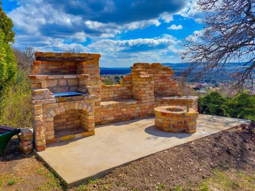 Dieses Ferienhaus mit einer Terrasse und Stadtblick hat 2 Schlafzimmer, ein Wohnzimmer, einen Flachbild-TV, eine gut ausgestattete Küche mit einem Kühlschrank und einem Ofen sowie 1 Badezimmer mit einer Dusche. In diesem Ferienhaus werden Handtücher und Bettwäsche angeboten.