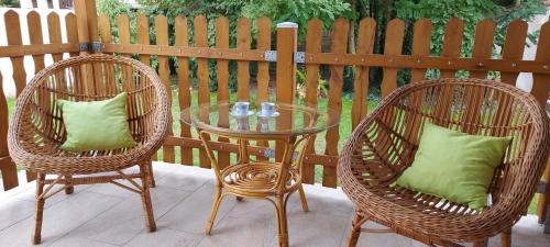Diese Ferienwohnung mit einer Terrasse und Gartenblick hat 2 Schlafzimmer, ein Wohnzimmer, einen Flachbild-TV, eine gut ausgestattete Küche mit einem Kühlschrank und einem Ofen sowie 1 Badezimmer mit einer Badewanne. In dieser Ferienwohnung werden Handtücher und Bettwäsche zur Verfügung gestellt.