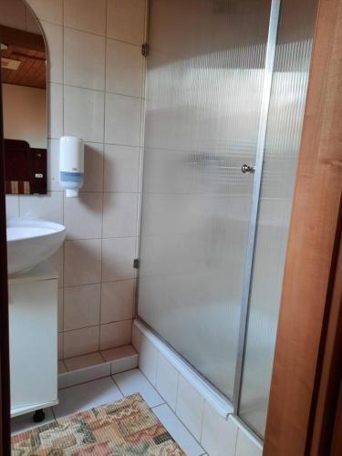 Ein voll ausgestattetes eigenes Badezimmer mit einer Dusche und einem Haartrockner ist vorhanden.