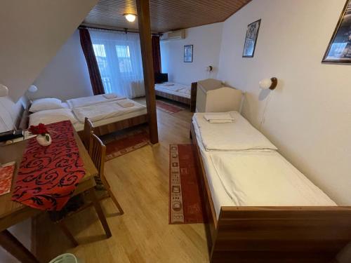 Die Unterkunft Koller Panzió, die in Bonyhád, 42 km von UNESCO-Welterbe - Besucherzentrum Cella Septichora entfernt gelegen ist, verfügt über Übernachtungsmöglichkeiten mit kostenlosen Fahrrädern, einem kostenlosen Privatparkplatz, einem Garten und einer Gemeinschaftslounge. Diese Pension liegt ungefähr 42 km von Downtown Candlemas Church of the Blessed Virgin Mary entfernt, hat kostenloses WLAN und ist außerdem 42 km entfernt von Pécs Cathedral. Die allergikerfreundliche Unterkunft ist 40 km von Kulturzentrum Zsolnay Cultural Quarter entfernt gelegen.