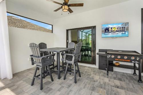 Dieses Ferienhaus ist versehen mit 4 Schlafzimmern, 3 Badezimmern, Bettwäsche, Handtüchern, einem Flachbild-TV mit Kabelkanälen, einem Essbereich, einer voll ausgestatteten Küche und einer Terrasse mit Poolblick.