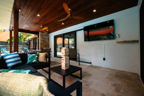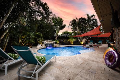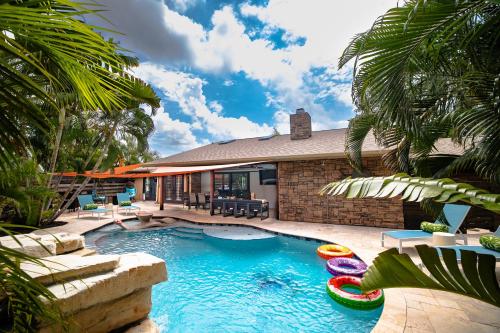 Die Unterkunft Heated Pool-Game Room-King Beds-75in TV-Sleeps 14, die in Palma Sola Park gelegen ist, 1,4 km von Strand im Palma Sola Causeway Park und 20 km von Kunstmuseum John and Mable Ringling entfernt, besticht durch einen Außenpool und eine Klimaanlage. Dieses Ferienhaus hat einen eigenen Pool, einen Garten, einen Grill, kostenloses WLAN und einen kostenlosen Privatparkplatz.