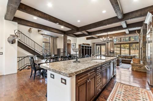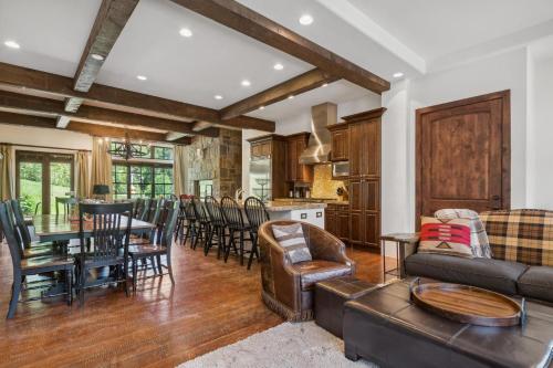 Dieses Ferienhaus ist versehen mit 4 Schlafzimmern, 5 Badezimmern, Bettwäsche, Handtüchern, einem Flachbild-TV mit Kabelkanälen, einem Essbereich, einer voll ausgestatteten Küche und einer Veranda / Patio mit Bergblick.