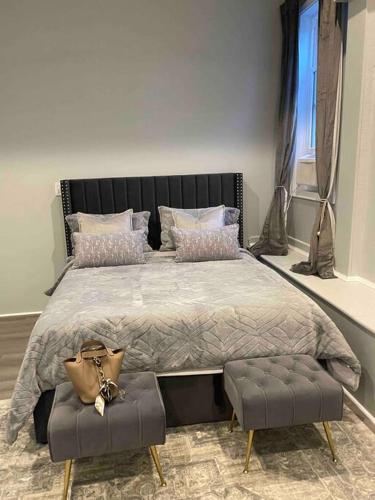 Diese Ferienwohnung mit Klimaanlage ist versehen mit 1 Schlafzimmer, Flachbild-TV und einer Küche mit einem Kühlschrank und einem Ofen In dieser Ferienwohnung werden Handtücher und Bettwäsche angeboten.