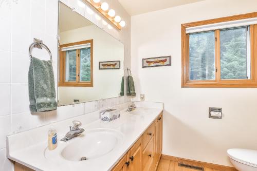 Dieses Ferienhaus ist eingerichtet mit 5 Schlafzimmern, 2 Badezimmern, Bettwäsche, Handtüchern, einem TV, einem Essbereich, einer voll ausgestatteten Küchenzeile und einer Veranda / Patio mit Seeblick.