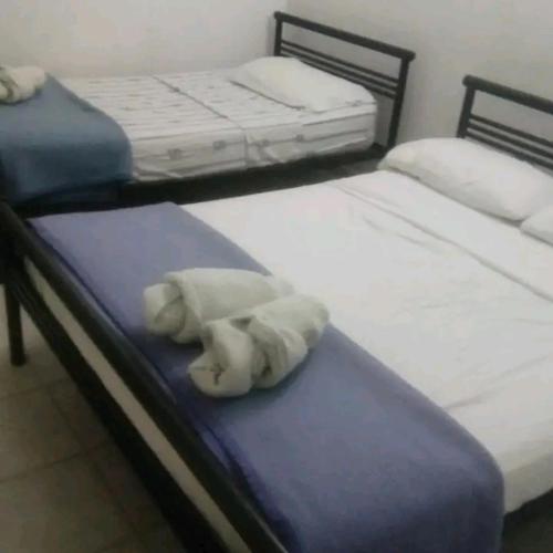 In diesem Privatzimmer werden Handtücher und Bettwäsche angeboten.