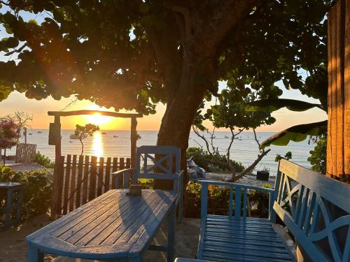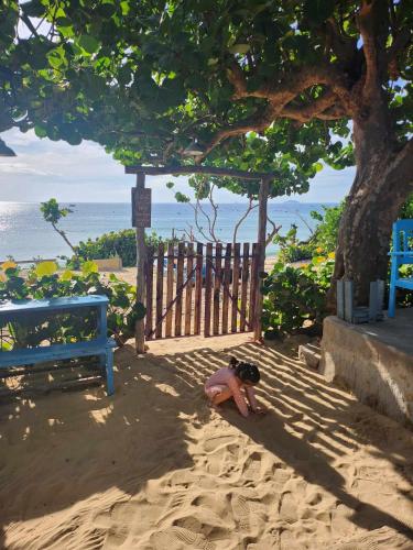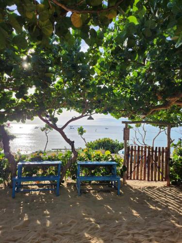 Die Unterkunft nhà Ba cơm Má mit Gartenblick in Phương Phi bietet Übernachtungsmöglichkeiten mit einem Garten, einem eigenen Strandbereich und einer Terrasse.
