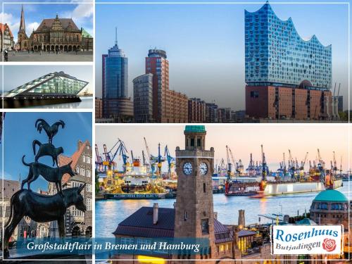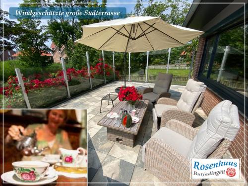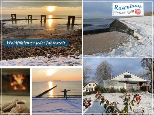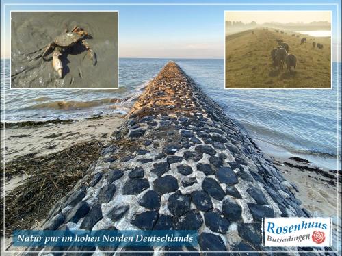 Nordseeurlaub im hochwertigen Feriendomizil Rosenhuus mit Sauna und Kamin im idyllischen Butjadingen ofrece jardín y vistas al mar. Se encuentra en Eckwarden, a 46 km de Estación Central de Bremerhaven y a 49 km de Centro de Convenciones Stadthalle Bremerhaven. Este alojamiento frente a la playa ofrece parking privado gratis, wifi gratis y acceso a un balcón.