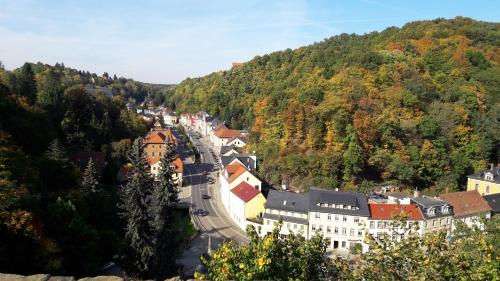 Bismarckhöhe Tharandt se encuentra en Tharandt, a 17 km de Estación Central de Dresde y a 19 km de Centro Internacional de Congresos de Dresde, en una zona donde se puede practicar senderismo. Este alojamiento ofrece parking privado gratis, wifi gratis y acceso a un balcón.