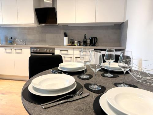 El apartamento ofrece terraza, vistas a la montaña, zona de estar, TV de pantalla plana, cocina totalmente equipada con nevera y lavavajillas, y baño privado con bañera y artículos de aseo gratuitos. También se ofrece horno, fogones y tostadora, además de cafetera y hervidor.