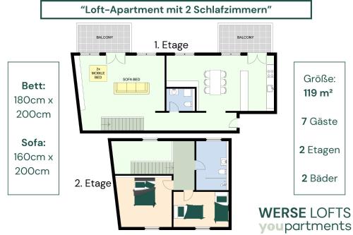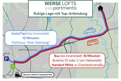 119 QM - Exklusiv auf 2 Etagen - Werse Loft by youpartments está en Münster, a 7,4 km de Estación Central de Münster, a 7,8 km de Centro de Congresos de Münster y a 9 km de Catedral de Münster, y dispone de balcón. Hay un restaurante en el alojamiento, además de parking privado gratis y wifi gratis.