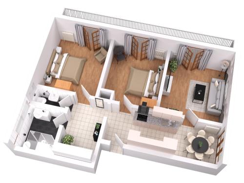 El apartamento dispone de balcón, 1 dormitorio, sala de estar y cocina bien equipada con nevera y lavavajillas. Hay toallas y ropa de cama en el apartamento.