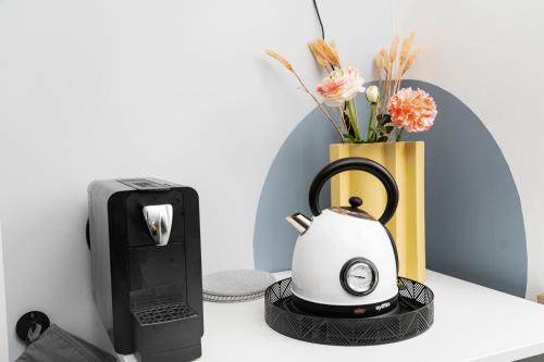 Este apartamento consta de 1 dormitorio, una sala de estar, una cocina totalmente equipada con nevera y cafetera, y 1 baño con ducha y artículos de aseo gratuitos. Hay toallas y ropa de cama en el apartamento.