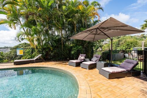 King bed studio seperate entry sauna pool garden view, que cuenta con piscina al aire libre, jardín y terraza, ofrece alojamiento en Terranora con wifi gratis y vistas a la piscina. Este apartamento también dispone de piscina privada.