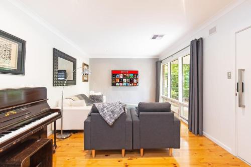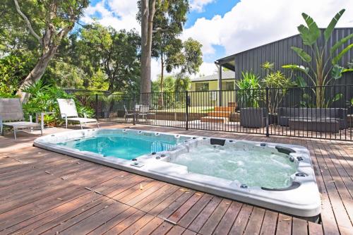 Home among the Gum Trees - free wine se encuentra a unos 16 km de Bicentennial Conservatory, y ofrece alojamiento con piscina al aire libre y wifi gratis. Esta casa o chalet dispone de piscina privada, jardín y parking privado gratis.