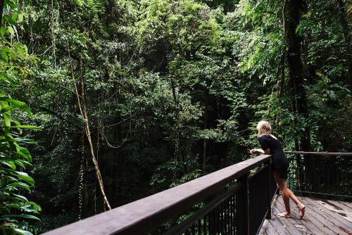 La selva tropical de Daintree es una rara joya de la corona de la Madre Naturaleza que se cree tiene más de 180 millones de años de antigüedad y los 15 bayanes (casas de árboles) del lodge están inmersos en el dosel de la selva que permite a los huéspedes reconectarse con la naturaleza y seres queridos en un entorno tropical exuberante.