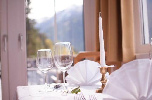El restaurante del Alpenfriede Hotel es para no fumadores y sirve desayunos y cenas con platos locales e internacionales.