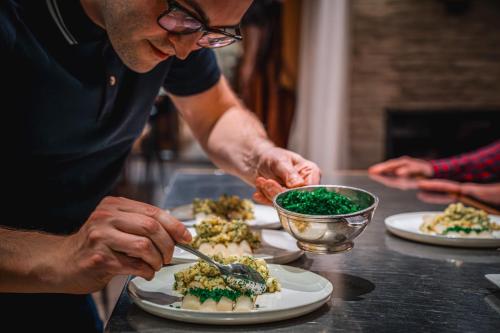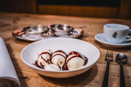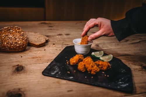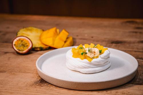 Se sirve un desayuno diario, que incluye pan, mermelada, huevos y diferentes productos para untar. El restaurante del hotel ofrece platos de cocina de temporada para el almuerzo y la cena. También se preparan almuerzos para llevar.