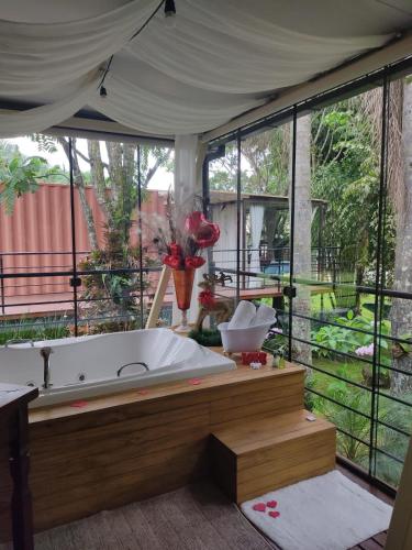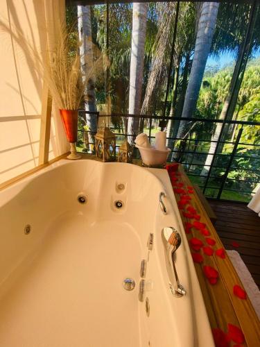 Pousada L'Amore está en Siderópolis y cuenta con jardín. Todas las opciones de alojamiento de este hotel de 5 estrellas tienen vistas al lago y bañera de hidromasaje. Hay terraza, wifi gratis y parking privado gratis.