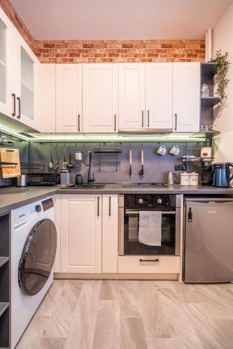 El apartamento cuenta con 1 dormitorio, una zona de cocina con nevera y horno, y 1 baño con ducha, secador de pelo y lavadora. Hay toallas y ropa de cama en el apartamento.