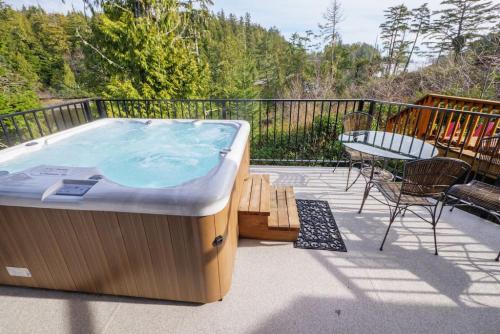 Storm Bay, Family Home with Hot Tub and Inlet View, que tiene vistas a la montaña, ofrece alojamiento con patio y cafetera, y está a unos 5 min a pie de Terrace Beach. Esta casa o chalet dispone de parking privado gratis, recepción 24 horas y wifi gratis.