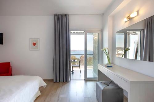 Las habitaciones disponen de TV de pantalla plana con canales vía satélite y tienen vistas directas o laterales al mar Mediterráneo. El baño privado incluye bañera o ducha, secador de pelo y artículos de aseo gratuitos.