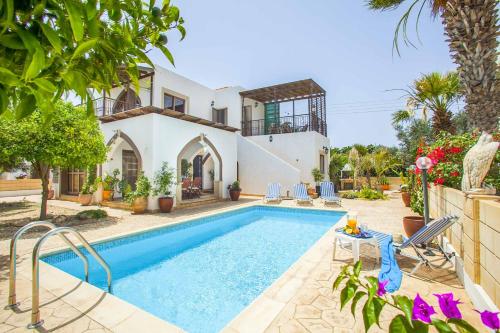Villa Euphoria, que está en Protaras, tiene aire acondicionado y ofrece alojamiento con piscina privada, vistas al mar y balcón. Esta villa está a 8,5 km de Parque nacional Cabo Greco y a 11 km de Monasterio de Ayia Napa.