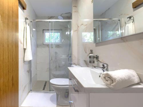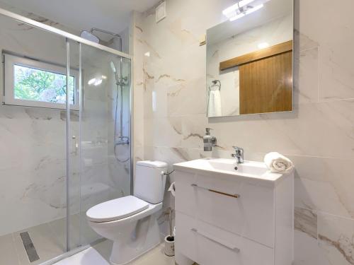 Esta casa o chalet ofrece una terraza con vistas a la piscina y también dispone de TV vía satélite, una cocina bien equipada con nevera, lavavajillas y horno, y 3 baños con ducha y secador de pelo.