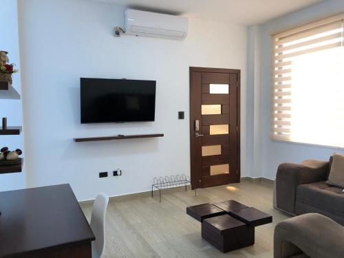 El apartamento ofrece balcón, vistas a la ciudad, zona de estar, TV de pantalla plana, cocina totalmente equipada con nevera y horno, y baño privado con ducha. También hay microondas y cafetera.