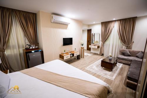 Las habitaciones incluyen aire acondicionado, TV de pantalla plana con canales vía satélite, nevera, cafetera, bidet, artículos de aseo gratuitos y armario. Las habitaciones del alojamiento tienen baño privado con ducha y secador de pelo, y algunas habitaciones también ofrecen vistas a la ciudad. Todas las unidades cuentan con minibar.