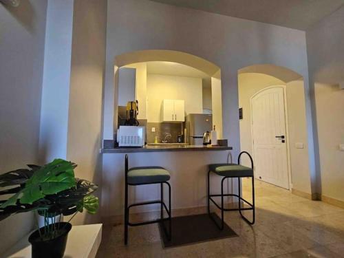 Serene 1-Bedroom apartment está en Hurghada y dispone de alojamiento con piscina privada, balcón y vistas al jardín. Este alojamiento con aire acondicionado está a 31 km de Puerto deportivo de Hurghada y ofrece wifi gratis y parking privado en el propio alojamiento.
