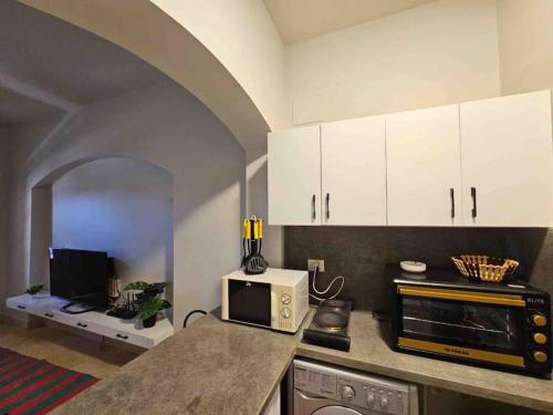 El apartamento tiene terraza, 1 dormitorio, sala de estar y cocina bien equipada con nevera y microondas. Hay toallas y ropa de cama en el apartamento.