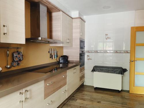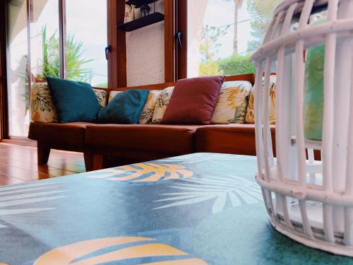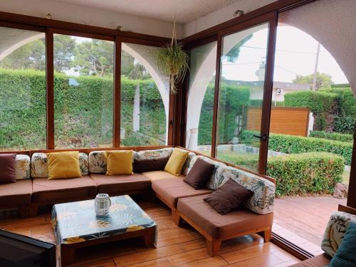 La casa o chalet cuenta con patio y vistas a la piscina, y dispone de 4 dormitorios, una sala de estar, TV de pantalla plana, una cocina equipada con nevera y lavavajillas, y 2 baños con ducha.