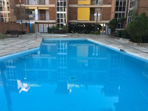 Además de la piscina al aire libre, el apartamento también dispone de zona de juegos infantil.