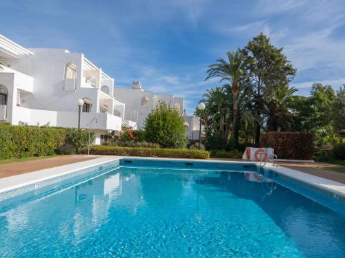 El apartamento tiene 2 dormitorios, 2 baños, ropa de cama, toallas, TV de pantalla plana con canales por cable, zona de comedor, cocina totalmente equipada y terraza con vistas a la piscina.