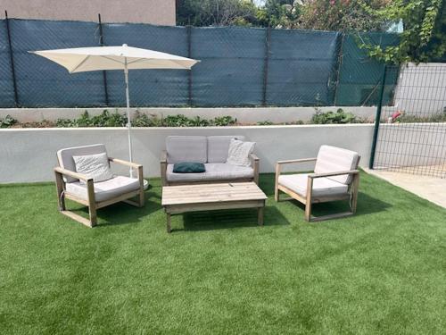 Appartement au calme avec jardin privatif dans maison, que tiene jardín, salón de uso común y terraza, dispone de alojamiento en Cagnes-sur-Mer con wifi gratis y vistas al jardín. Este apartamento está a 16 min a pie de Cros de Cagnes y a 8,9 km de Estadio Allianz Riviera.