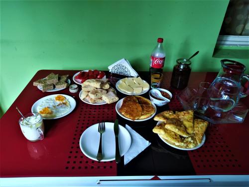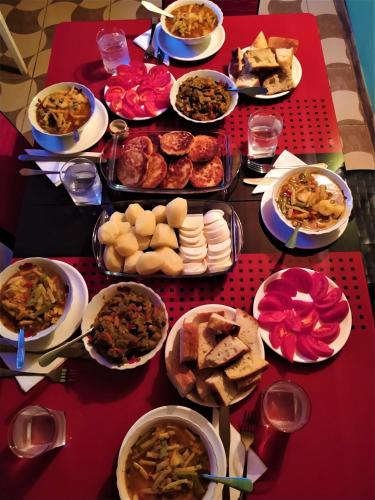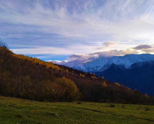 En el hostal o pensión, cada habitación cuenta con patio. Gujejiani Guest house ofrece algunas unidades con vistas a la montaña, y todas cuentan con balcón. Las unidades disponen de baño compartido, artículos de aseo gratuitos y ropa de cama.