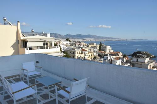 Modern Apartment with Stunning Piraeus Views, que cuenta con vistas a la ciudad, ofrece alojamiento con terraza y balcón a unos 6 min a pie de Playa de Votsalakia. Este alojamiento con vistas al mar dispone de patio.