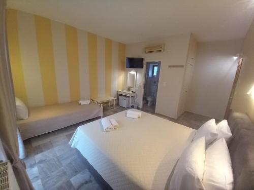 En el hotel, las habitaciones están equipadas con armario. Todas las unidades del alojamiento tienen baño privado con secador de pelo, TV de pantalla plana y aire acondicionado. Algunas habitaciones también disponen de balcón. En Hermes Hotel, todas las habitaciones tienen ropa de cama y toallas.