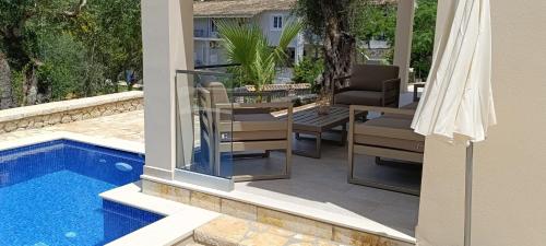 Villa Eleni - Deluxe apartment with Private Pool, que tiene vistas a la montaña, dispone de alojamiento con terraza y balcón a unos 8 min a pie de Playa Liapades. Este apartamento tiene piscina privada, jardín y parking privado gratis.