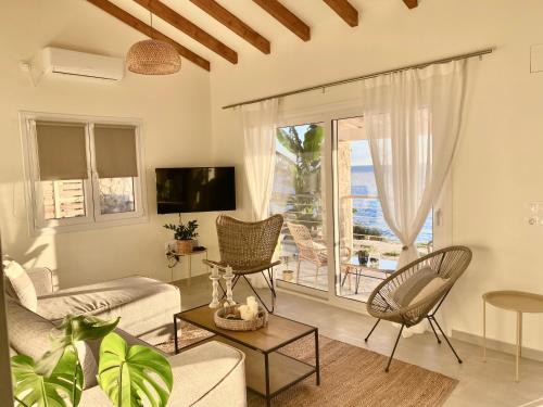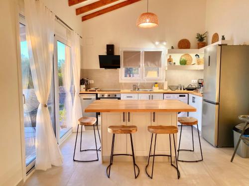 Esta villa con aire acondicionado consta de 2 dormitorios, una sala de estar, una cocina totalmente equipada con nevera y cafetera, y 2 baños con ducha y artículos de aseo gratuitos. Hay toallas y ropa de cama en la villa.