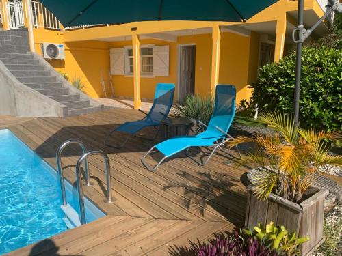 Bas de villa de 3 chambres et spa, que cuenta con terraza y zona de barbacoa, dispone de alojamiento en Vieux-Habitants con wifi gratis y vistas al mar. El alojamiento, que se encuentra a 13 min a pie de Plage de Simaho, ofrece piscina de temporada al aire libre y parking privado gratis.