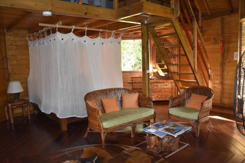 Gite du Manial "Cabane du sentier des étoiles" se encuentra en Pointe-Noire, a solo pocos pasos de Playa de Caraibe, y ofrece alojamiento frente a la playa con jardín, zona de barbacoa y wifi gratis. Este alojamiento con vistas al jardín dispone de balcón.