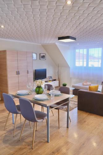 Trón Apartman se encuentra en Siklós, a solo 29 km de Centro de visitantes de Cella Septichora - Patrimonio mundial de la UNESCO, y ofrece alojamiento con vistas a la ciudad, wifi gratis y parking privado gratis. Este alojamiento con vistas a la montaña dispone de balcón.