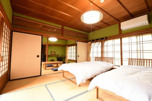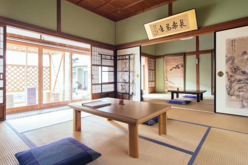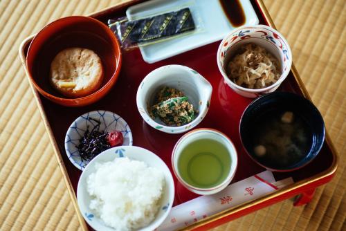 Las habitaciones tienen una decoración de estilo minimalista y ambiente relajado, suelo de tatami (entramado de paja), camas de tipo futón tradicional, TV y mesa baja. El baño y el aseo son compartidos, y algunas habitaciones tienen vistas al jardín.